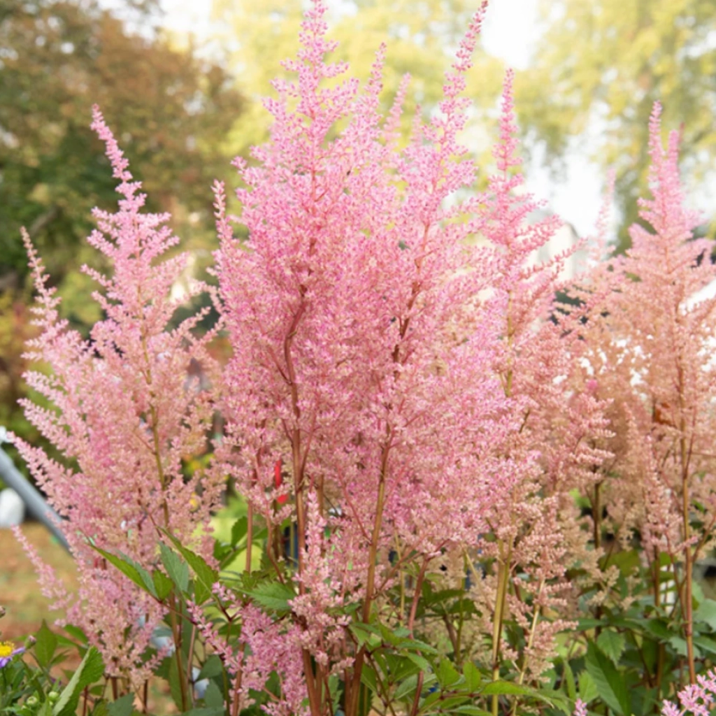 O plantă perenă cu frunze asemănătoare ferigii și cu flori de un roz foarte plăcut, care par plușate. Înflorește vara, iar florile sale luminează zonele mai umbrite ale grădinii. Aduce o notă de eleganță și un aer romantic în peisaj, creând un ambient de poveste. Astilbe preferă solul umed, bogat în nutrienți. Se plantează în locuri semiumbrite sau umbrite.
