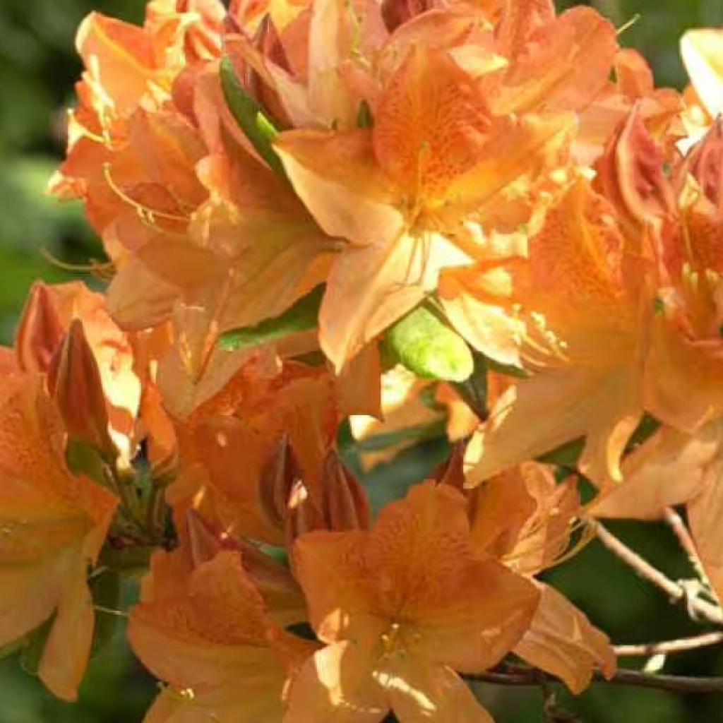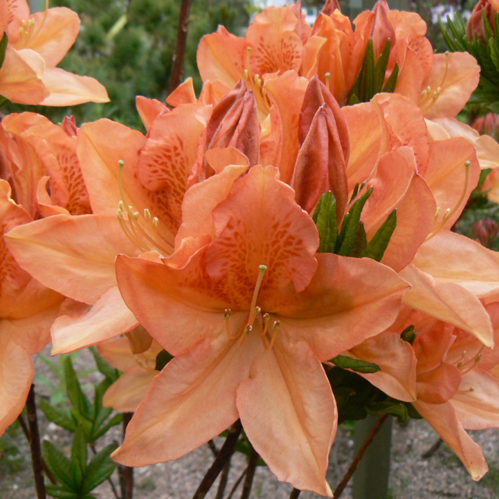Florile acestui soi se deschid din abundență în luna mai. Culoarea lor este de un portocaliu cald, cu tente de somon sau piersică, iar nuanțele se pot schimba în funcție de lumină. Planta formează o tufă viguroasă, bine ramificat și port natural. Pe timpul verii, frunzișul verde formează o masă compactă, iar spre toamnă culoarea se estompează treptat în nuanțe calde. Este un arbust care se integrează bine în grădini semiumbrite și sol acid.