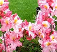 O azalee spectaculoasă, care atrage atenția cu florile sale sub formă de trompetă. Acestea se prezintă grupat, alcătuind buchețele drăgălașe și ies în evidență prinre frunzele verzi. Petalele de un roz trandafiriu cu timpul, tind spre alb și au pe mijloc un accent galben auriu. Se plantează la soare sau umbră parțială si are nevoie de sol acid.