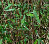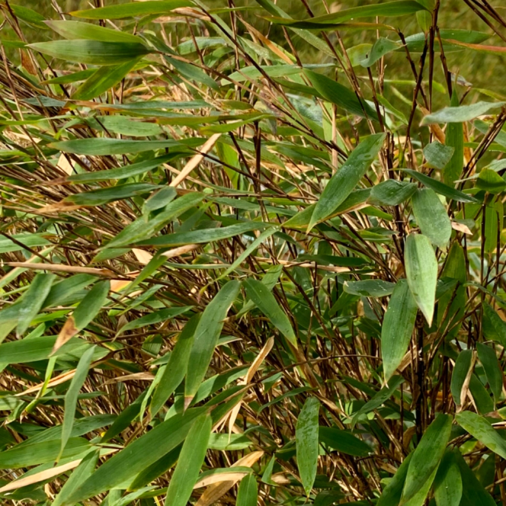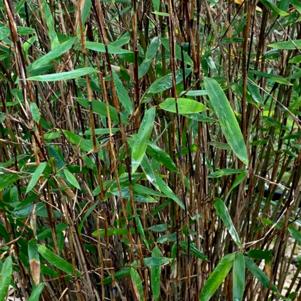 Acest soi de bambus veșnic verde formează tufe compacte fără a se răspândi invaziv prin rizomi. Tulpinile zvelte, cu diametrul de 6–8 mm, de culoare maro pot căpăta cu timpul nuanțe violet-închis spre negru. Frunzele sunt lanceolate, de un verde luminos. Planta preferă semiumbra, și un sol ușor acid spre neutru, moderat umed. Este un soi rezistent la ger. Tolerează poluarea urbană, fiind potrivit inclusiv pentru grădinil mici din oraș.