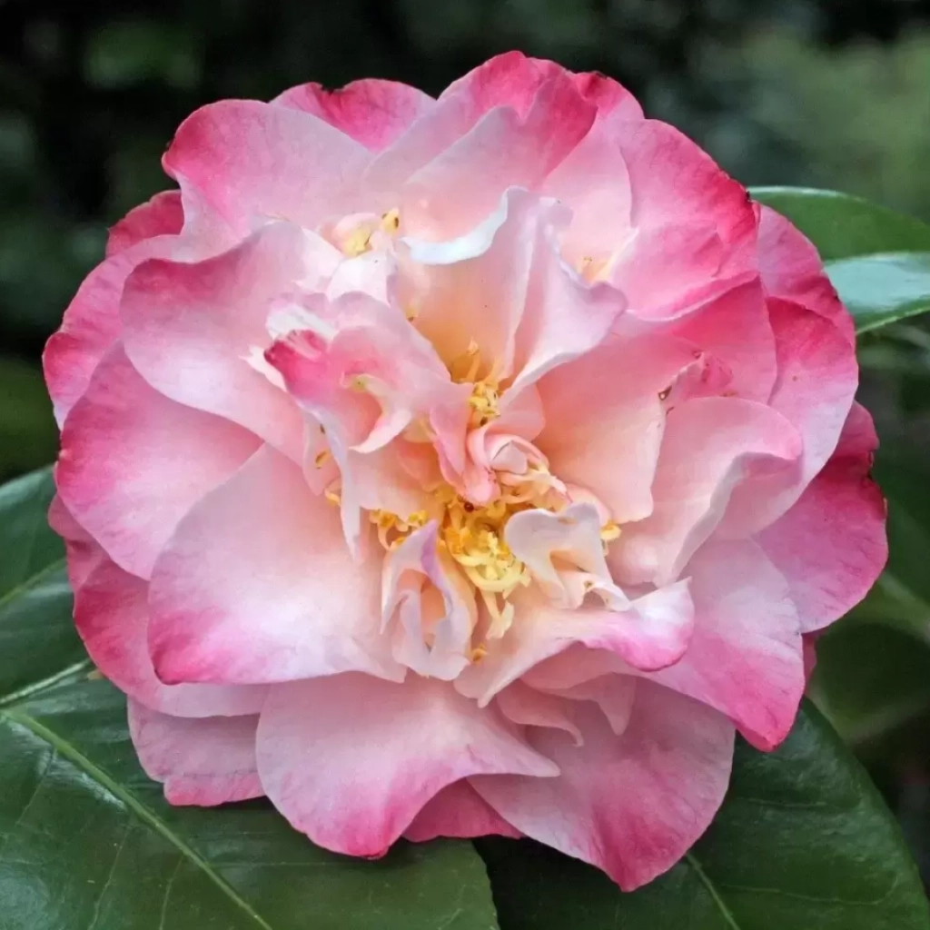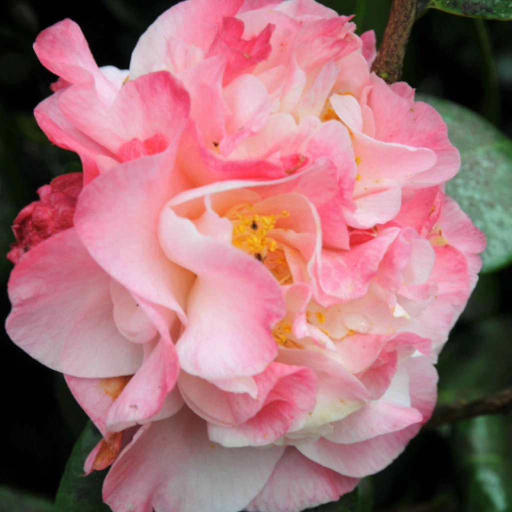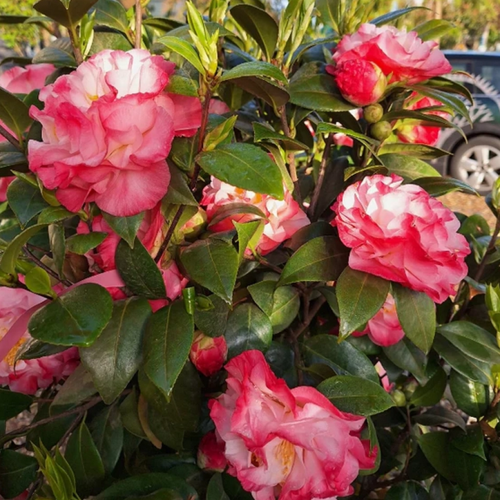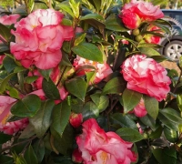 Un arbust ornamental veșnic verde elegant, cu frunze verde închis, lucioase, care rămân decorative tot anul. Florile acestei camelii au un farmec aparte și par pictate de mână unui artist. Forma florilor este asemănătoare cu cea a bujorilor, iar culoarea de bază este de un roz delicat, îmbogățit cu tonuri de roz-somon, și roz închis pe marginile petalelor. Ele pot măsura până la aproximativ 6–10 cm în diametru și creează un contrast superb cu frunzișul închis. Camelia înflorește la începutul primăverii, câteodată chiar de la sfărșitul iernii. Se plantează în locuri semiumbrite sau umbrite, în sol ușor acid și bine drenat.