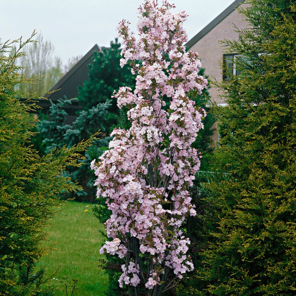 Acest cireș japonez cu creștere columnară înflorește abundent în primăvară. Florile semi-duble, de un roz-pal, cu parfum discret, au aproximativ 3-4 cm în diametru și apar în buchete de 3-5 flori la sfârșitul lunii aprilie și începutul lunii mai. În toiul înfloririi, florile acoperă aproape în întregime crengile. Cu timpul, nuanța florilor se deschide. Frunzele prezintă nuanțe de bronz primăvara, devin verzi vara, iar toamna se colorează în portocaliu și roșu. Având o siluetă îngustă, soiul este potrivit și pentru spații restrânse. Este un arbore rezistent, ușor de îngrijit, tolerant la condițiile din mediul urban. Se plantează în locuri însorite.