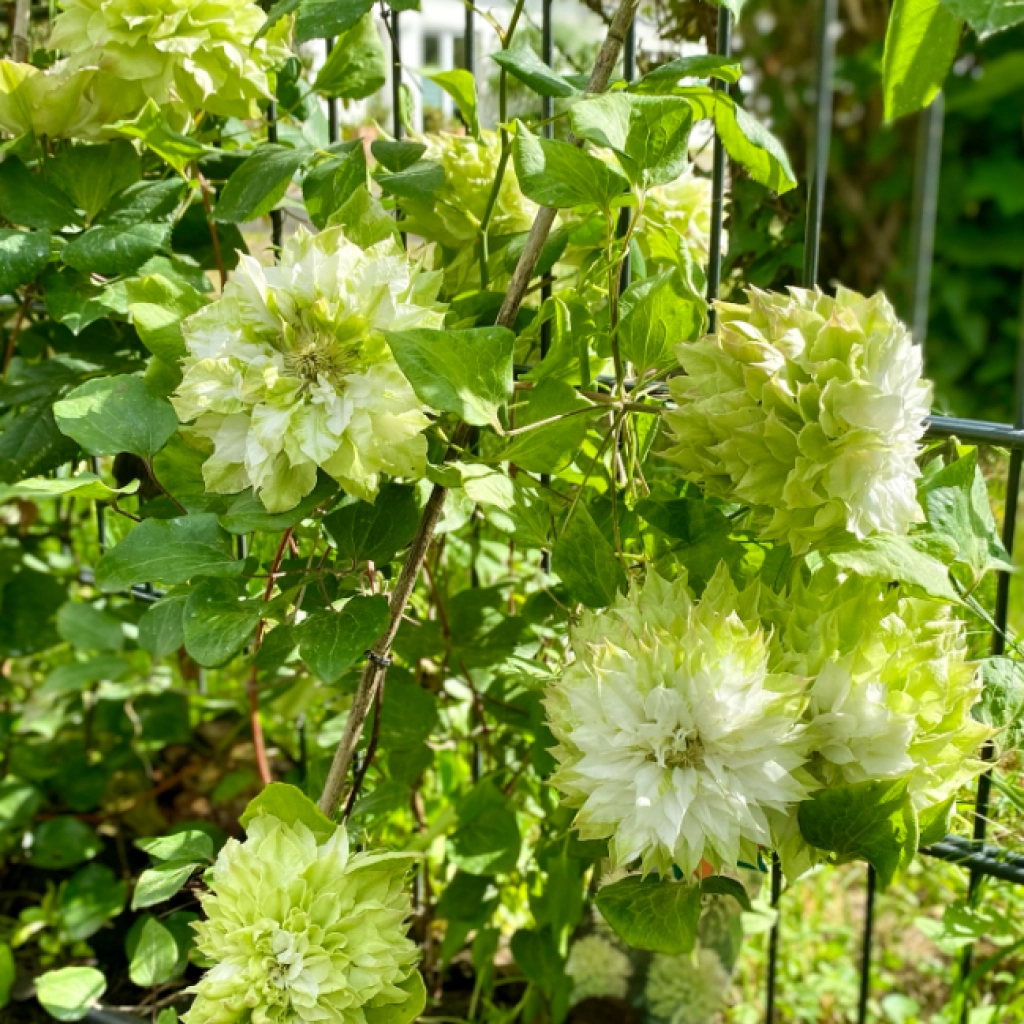 Soi japonez fascinant! Jocul de culori pe care îl putem regăsi la clematita Midori este unul cu-adevărat deosebit și delicat. Florile uriașe, cu un diamteru de circa 12-15 cm, sunt compuse din multiple rânduri de petale, ascuțite la vârf. Desimea acestora, le conferă un volum incredibil și un aspect cu totul aparte. Bobocii florali sunt verzi, însă pe măsură ce aceștia încep să deschisă, petalele se colorează în roz, pentru ca în final, la deschiderea totală, florile să devină albe. Ce parcurs interesant are cromatica acestor splendori!