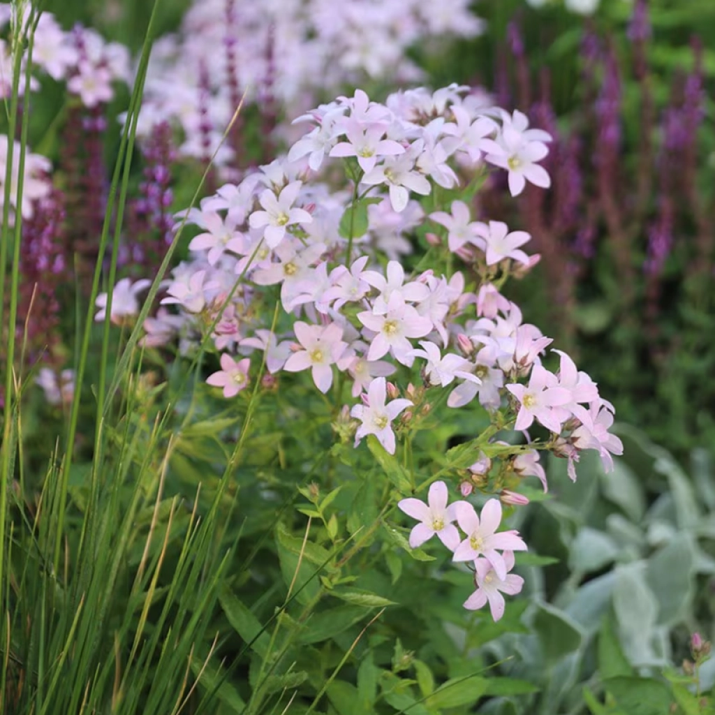Florile în formă de clopot, de un roz-pal, ale acestui soi sunt grupate în buchete rotunjite și dense la vârful tulpinilor ramificate, cu frunze ovale, de culoare verde. Este o plantă perenă ușor de îngrijit, de talie destul de înaltă. Înflorește bogat din iulie până în septembrie, cu condiția ca florile ofilite să fie îndepărtate regulat, stimulând astfel noi valuri de înflorire. Este totodată o floare tăiată excelentă, cu tulpini drepte și flori care rezistă bine în vază. Se plantează în locuri însorite sau semiumbrite.