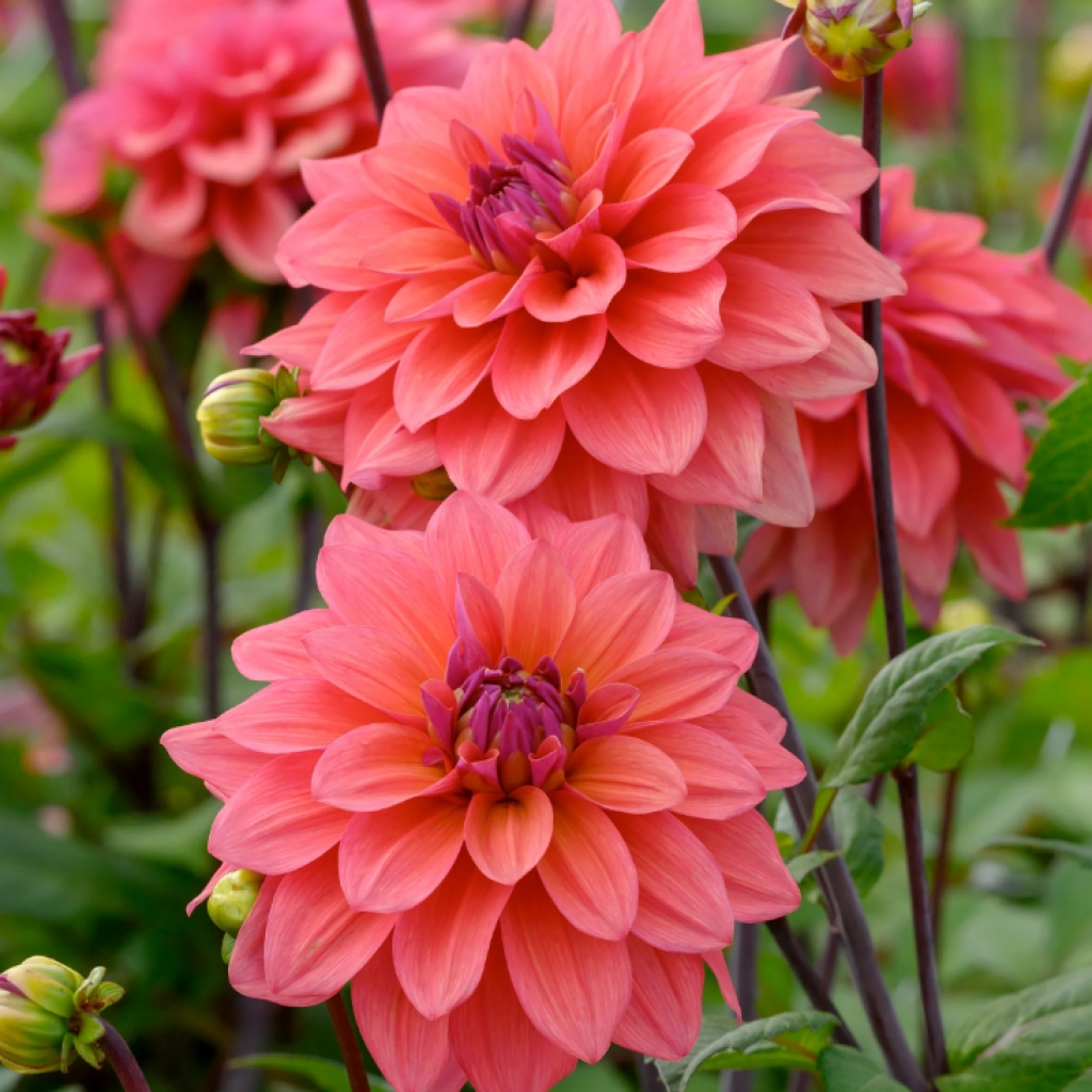 Acest soi este apreciat în special pentru cromatica sa unică, ce amintește de nuanțele cerului la răsărit. Petalele prezintă tonuri de roz-coral, piersică și caisă, oferind o luminozitate caldă. Centrul florii și baza petalelor (uneori și dosul acestora) sunt de un violet-purpuriu sau purpuriu-fucsia. Această combinație creează o paletă de culori rar întâlnit la dalii. Înflorește din iulie până la primele geruri din tomană. Un mare avantaj al acestui soi este că florile cresc pe tulpini lungi și rigide, fiind excelente pentru flori tăiate în vaze sau aranjamente florale. Se plantează în locuri însorite. Pachetul conține 1 rizom.