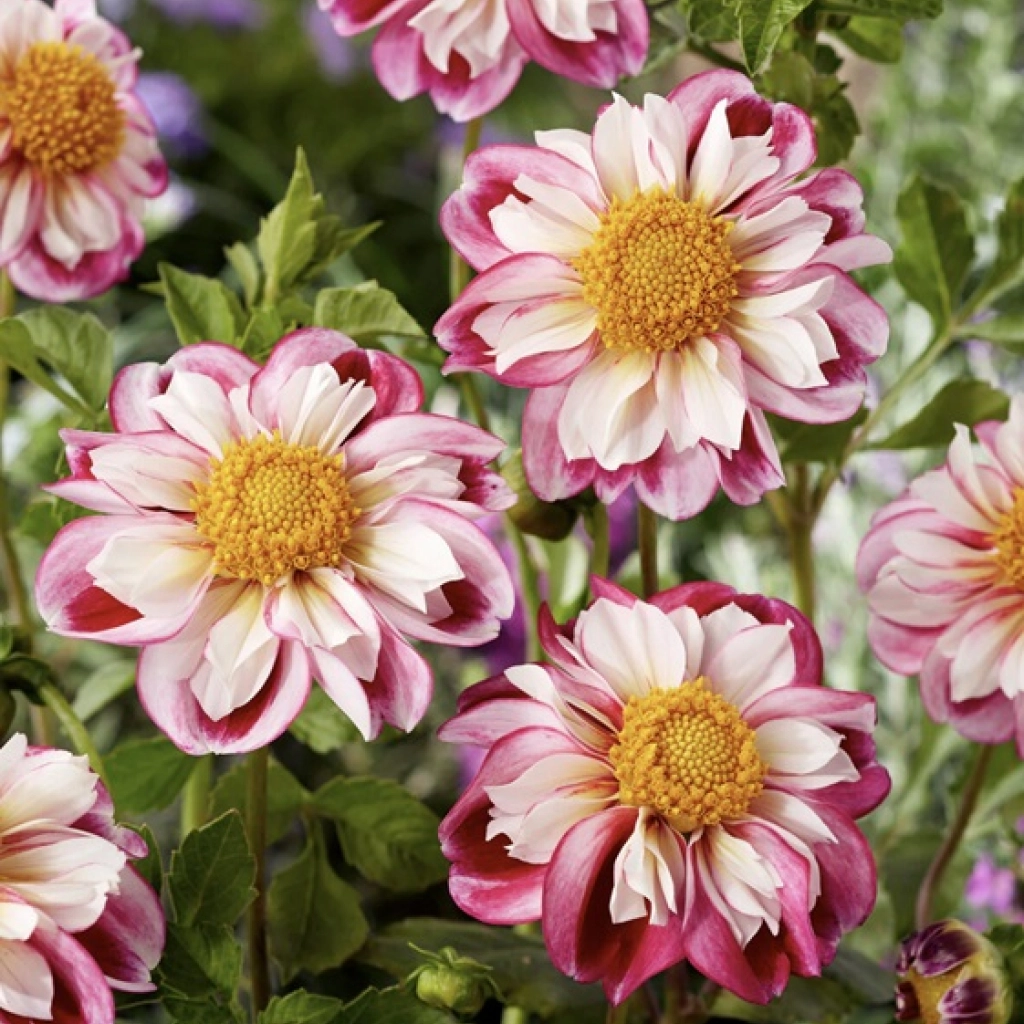 Dalia Bumble Rumble combină vesel petale de un roz închis și petale albe mai mici. Centrul florii, cu stamine galbene, dă un punct luminos și cald. Rezultă o floare cu aspect modern și jucăuș, care la prima vedere nu pare a fi o dalie. Perioada de înflorire durează din iulie până la primele geruri din toamnă. Se plantează în locuri însorite, în sol bine drenat. Pachetul conține 1 rizom.