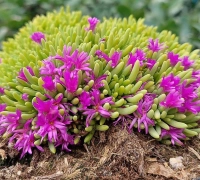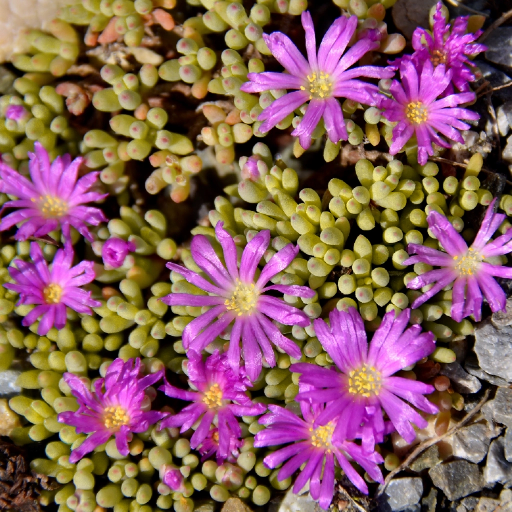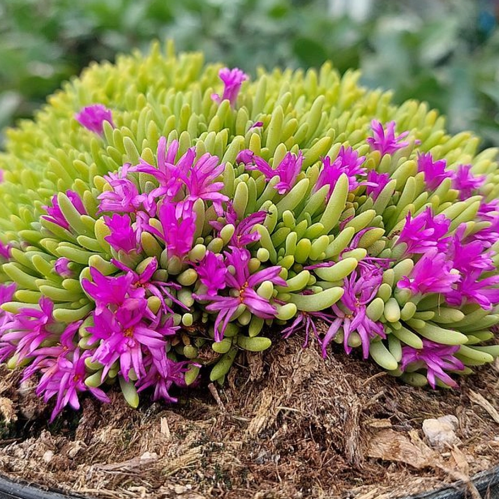 Această plantă suculentă se remarcă mai ales prin culoarea frunzelor. Primăvara, frunzișul prezintă nuanțe galbene mai intense, care treptat se estompează spre galben-cenușiu pe timpul verii. Florile purpurii apar primăvara și creează un contrast plăcut cu frunzișul. Floarea de cristal este o plantă tolerantă la secetă, potrivită pentru stâncării, dar și pentru grădini moderne sau mediteraneene. Preferă locurile însorite și solurile bine drenate.