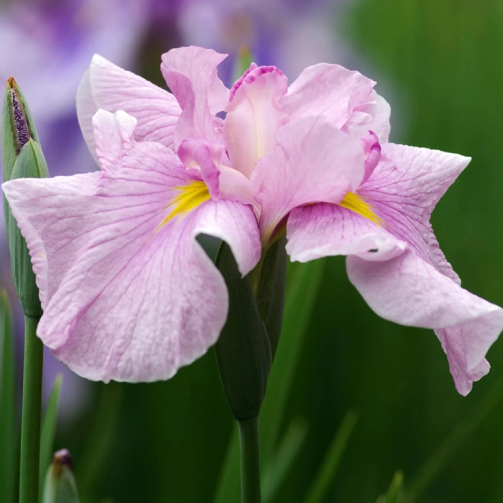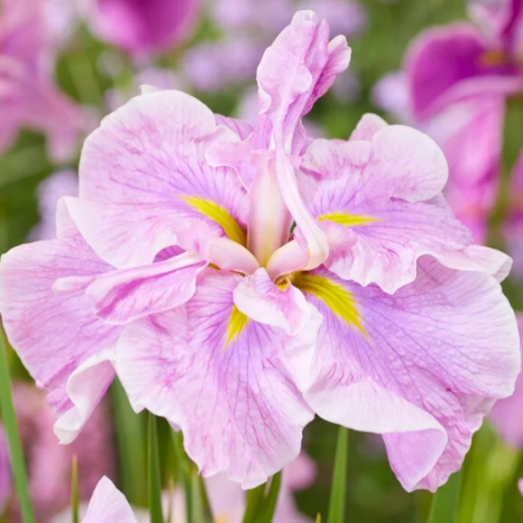 Florile spectaculoase, mari și elegante ale acestui iris japonez nu pot trece neobservate. Diametrul florilor poate ajunge chiar și la peste 15 cm, iar petalele în nuanțe roz-liliachii, feminine și rafinate, vor decora minunat grădinii. În plină înflorire, planta pare desprinsă dintr-un tablou romantic și luxuriant. Preferă un sol umed și ușor acid. Se plantează în locuri însorite, luminoase.
