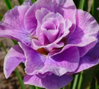 Un soi de Iris special, cu flori mari ce au petale duble, ondulate asemănătoare trandafirilor. Petalele fine de un violet deschis sunt scoase în evidență de mijlocul aprins al florilor. Realizează un contrast perfect în combinaţii cu alte soiuri închise la culoare.
