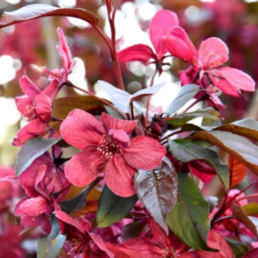 Mărul decorativ ne încântă atât cu frunzișul în nuanțe bogate, cât și cu înflorirea fermecătoare din primăvară. Frunzişul prezintă nuanțe de verde și purpuriu în primăvară și vară, iar toamna capătă nuanțe intense de roșu. În lunile aprilie și mai, copacul oferă un spectacol de flori purpuriu-roșiatice, cu un parfum delicat ce atrage albinele. Fructele mici, roșu închis, decorative, rămân pe ramuri până în iarnă, contribuind cu un farmec aparte și oferind un festin pentru păsări. Având o creștere moderată, poate fi o alegere elegantă si pentru grădinile mici și medii ca dimensiuni. Se plantează în locuri însorite.