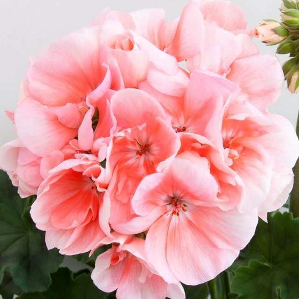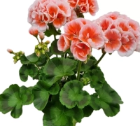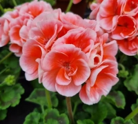 Aceste mușcate ne încântă cu flori de culoare roz-somon. Marginile petalelor sunt mai deschise la culoare, astfel florile par bicolore. Planta înflorește continuu din a doua jumătate a primăverii până în toamnă. Poate fi plantată în grădină, pe terase sau balcoane însorite, în ghivece și jardiniere. Va arăta minunat în compania soiurilor cu flori albe și roșii.