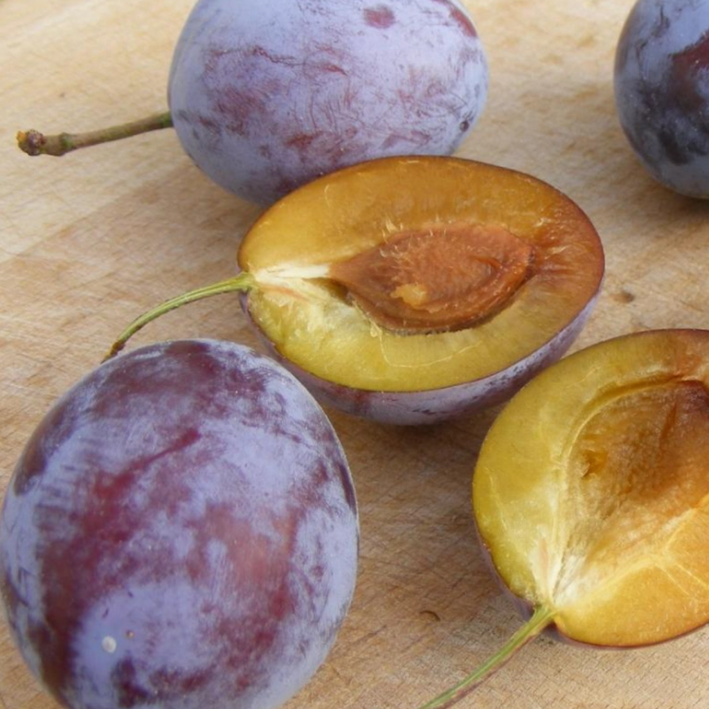 Este un pom de vigoare medie, ce formează o coroană bogată, piramidală ca formă. Produce fructe medii spre mari, invers ovoidale ca formă, cu pielița brumată, ce învelește pulpa galben-aurie, suculentă, cu un gust pronunțat de muscat, neaderentă la sâmbure. Prunele pot fi consumate ca atare, conservate sau uscate. Necesită polenizator: Prun Renglot de Althann, President, Sermina.