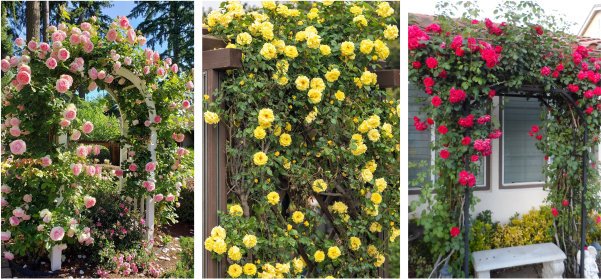 • Trandafirii cățărători pot fi plantați lângă alte plante cățărătoare, cum ar fi clematitele, cu care se vor întrepătrunde armonios.