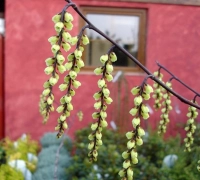 Acest arbust ornamental este una dintre cele mai spectaculoase plante din grădină. Se remarcă mai ales prin florile interesante, care atârnă ca niște șiraguri lungi de mărgele de pe crengile încă golașe în primăvară. Fiecare șirag este alcătuit din 25-50 de flori galbene. Ramurile tinere au o nuanță frumoasă de maro-roșcat, ceea ce oferă un contrast deosebit de estetic cu florile. Frunzele apar după înflorire. Vara, frunzișul este de un verde bogat, iar cu venirea toamnei capătă nuanțe calde. Se plantează în sol bine drenat, în locuri însorite sau semiumbrite. Expunerea la soare duce la o înflorire bogată și spectaculoasă.