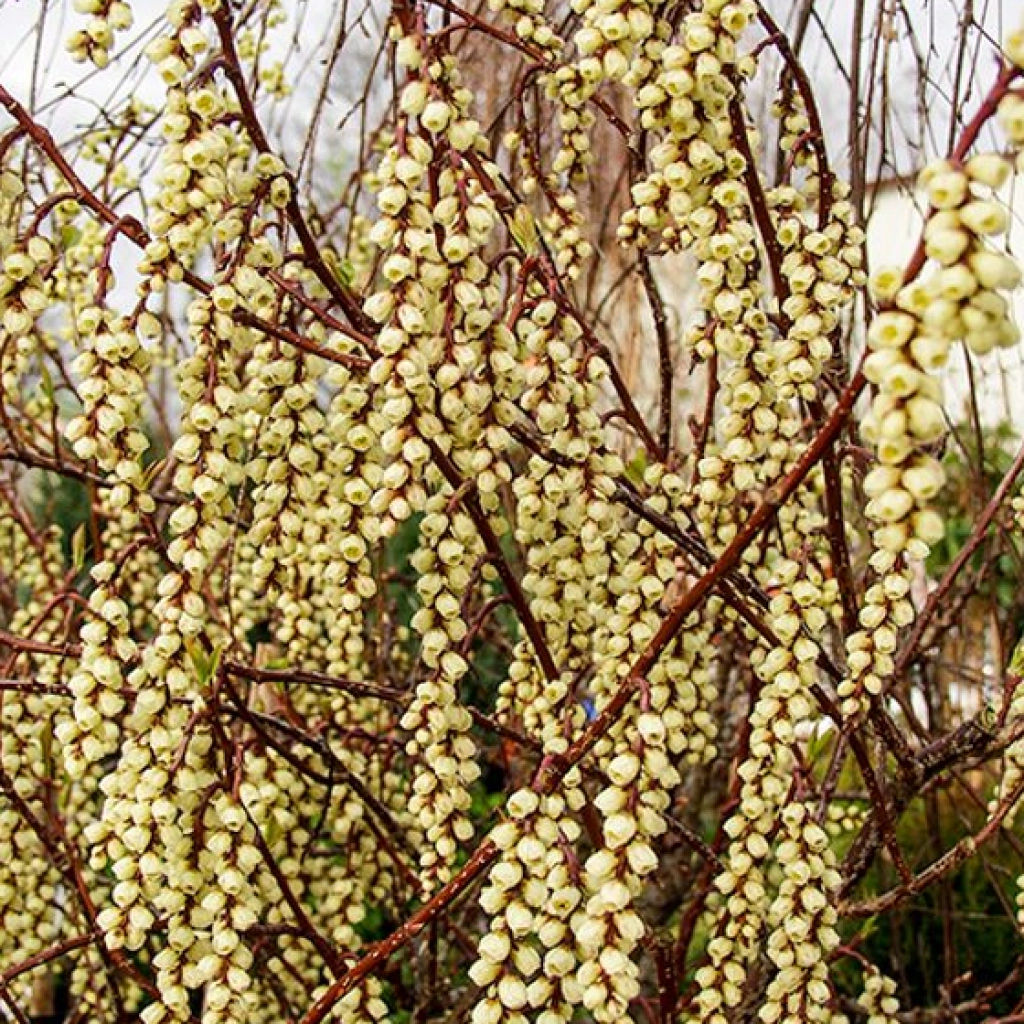 Acest arbust ornamental inedit și impresionant ne încântă chiar de la începutul primăverii. Se remarcă mai ales prin florile interesante, care atârnă ca niște șiraguri de mărgele de pe crengile încă golașe. Culoarea florilor este de obicei galben pal sau galben-verzui delicat. Ramurile tinere au o nuanță frumoasă de maro-roșcat, ceea ce oferă un contrast deosebit de estetic cu florile. Frunzele apar după înflorire. Vara, frunzișul este de un verde plăcut, iar cu venirea toamnei capătă nuanțe calde. Se plantează în sol bine drenat, în locuri însorite sau semiumbrite. Expunerea la soare duce la o înflorire bogată și spectaculoasă.