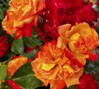 Un trandafir spectaculos și captivant, precum un dans pasional în pași de Rumba. Incredibilul element decorativ pentru grădină este format dintr-un foliaj verde, bogat și o multitudine de flori mari, pline, viu colorate. Acestea sunt extrem de longevive pentru un trandafir cățărător, emană un parfum delicat și îmbină mai multe nuanțe înflăcărate de: galben-auriu și portocaliu.