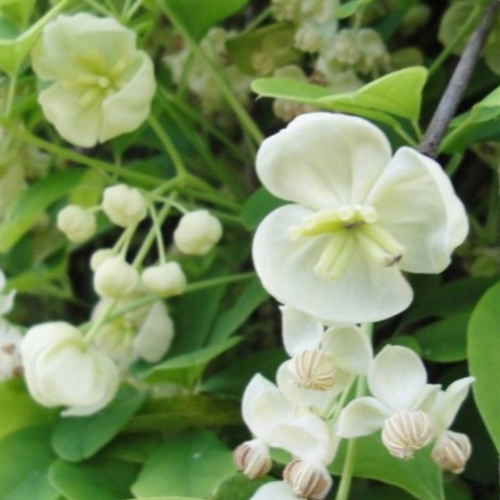 Este o plantă cățărătoare extrem de îndrăgită, acum într-o variantă care exprimă puritate. Albul imaculat al florilor cu parfum de vanilie este de-a dreptul fascinant! Plantată lângă un alt soi de akebia, și dacă condițiile meteo sunt favorabile, planta poate produce fructe mov-deschis, comestibile, care se coc la începutul toamnei și care îi sporesc valoarea ornamentală. Se plantează în locuri însorite.