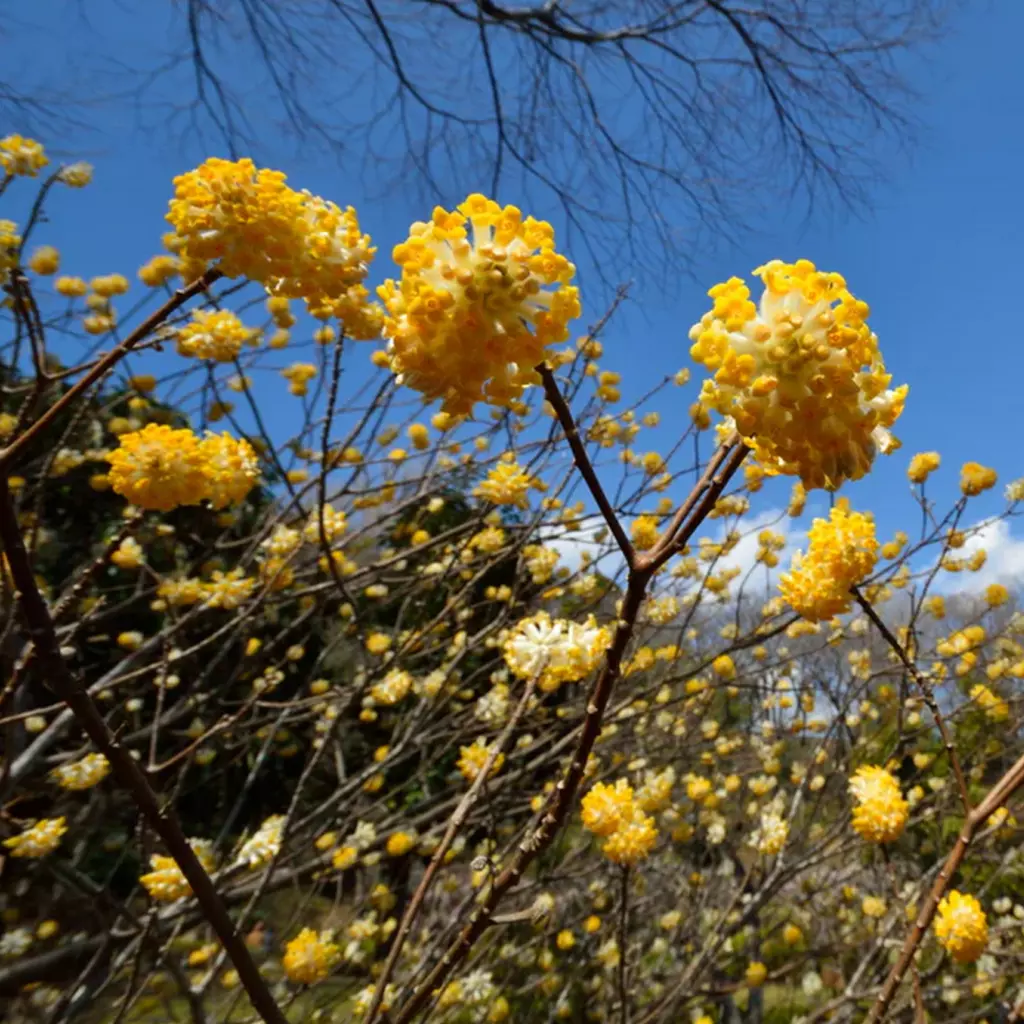 Honey Sunshines este un decor ideal pentru grădină, cunoscut sub denumirea: arbust de hârtie japonez. Se dezvoltă armonios atât în zone luminoase, cât și semiumbrite, iar la maturitate ajunge până la 1,2 – 1,7 m, înălțime. Prezintă ramificații bogate, dispuse echilibrat și formează o tufă compactă, destul de amplă. Punctul său principal de atracție constă în florile care apar pe primăvara, în perioada februarie-aprilie, pe crengile golașe. Acestea stau grupat, formând inflorescențe globulare fabuloase, de un galben-auriu la culoare. Emană un parfum dulceag, cu aromă de miere și cuișoare. Sunt favoritele albinelor. Iarna, dacă temperatura scade sub -15 grade C, arbustul va avea nevoie de protecție. Preferă solurile bogate în humus. Asiaticii îi folosesc tulpina la fabricarea hârtiei, de aici rezultând și denumirea arbustului.