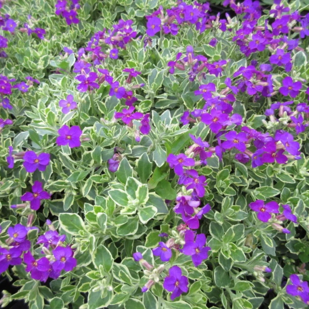 O plantă perenă joasă, de tip acoperitor de sol, apreciată atât pentru înflorirea abundentă de primăvară, cât și pentru frunzișul decorativ pe tot parcursul anului. În mijlocul primăverii, planta este practic acoperită de flori mici, cu patru petale, în nuanțe intense de violet. Frunzele mici, gri-verzui, cu margini alb-crem, îi oferă un aspect decorativ și luminos chiar și în afara perioadei de înflorire. Preferă locurile însorite și solurile bine drenate, chiar și mai sărace sau ușor alcaline, fiind o plantă adaptată condițiilor mai uscate după ce se stabilizează.