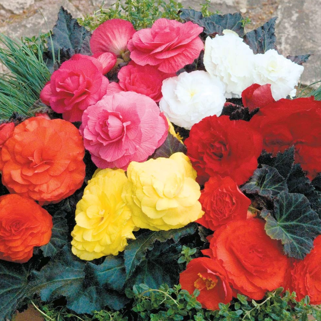 Begoniile din acest pachet produc flori mari, pline, în culori diferite. Frunzișul este verde, ușor lucios, iar florile apar în număr mare de la sfârșitul primăverii până în toamnă. Begoniile arată spectaculos în jardiniere și ghivece, deoarece florile apar într-un număr așa de mare, încât acoperă aproape în întregime frunzele. Se plantează în locuri semiumbrite sau umbrite. Pachetul conţine 3 bulbi.