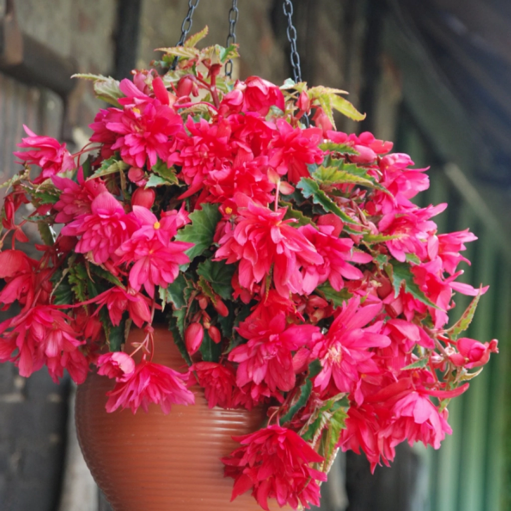 Această begonie este împodobită cu flori de un roz intens ce atârnă grațios. Este alegerea ideală pentru terase, balcoane, jardiniere și ghivece suspendate. Înflorește bogat de la începutul verii până în mijlocul toamnei. Este o plantă foarte estetică, ușor de îngrijit. Se amplasează în locuri semiumbrite sau umbrite. Pachetul conţine 3 bulbi.