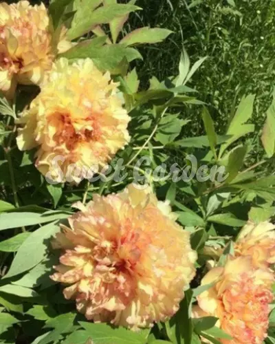 Frumusețea acestui tip de bujor este dată de florile imense, luminoase. Sunt spectaculoase prin desimea petalelor; acestea fiind duble, crețe și dantelate - ceea ce conferă volum. Fiecare petală, de un portocaliu deschis este conturată pe margini, cu o tușă subțire, coral închis spre roșu. Ca amplasament, preferă locurile cu soare sau semiumbră. Înflorește începând cu luna mai, până la sfârșit de iunie.