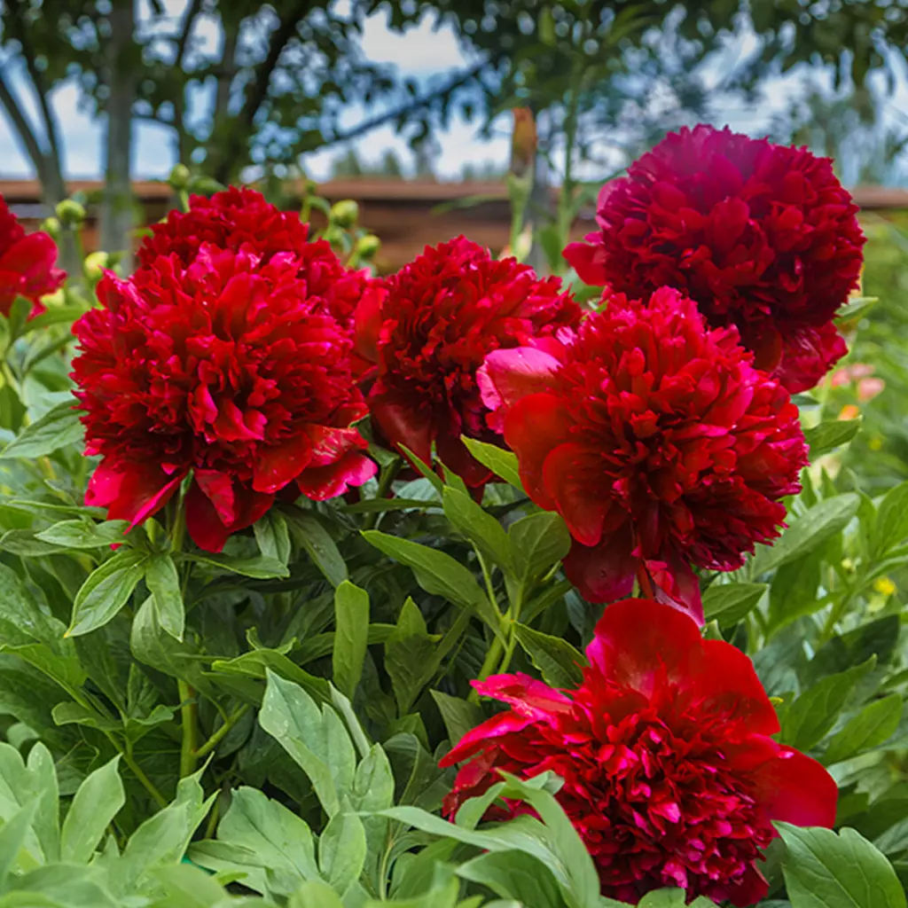 Bujorii roşii sunt foarte apreciaţi datorită florilor pline de culoare şi parfum. În Antichitate erau consideraţi simbolul prosperităţii şi al luxului deoarece doar oamenii foarte bogaţi îşi permiteau să-i cultive. Formează o tufă bogată și sunt perfect rezistenţi la ger. Pachetul conţine 1 rizom.