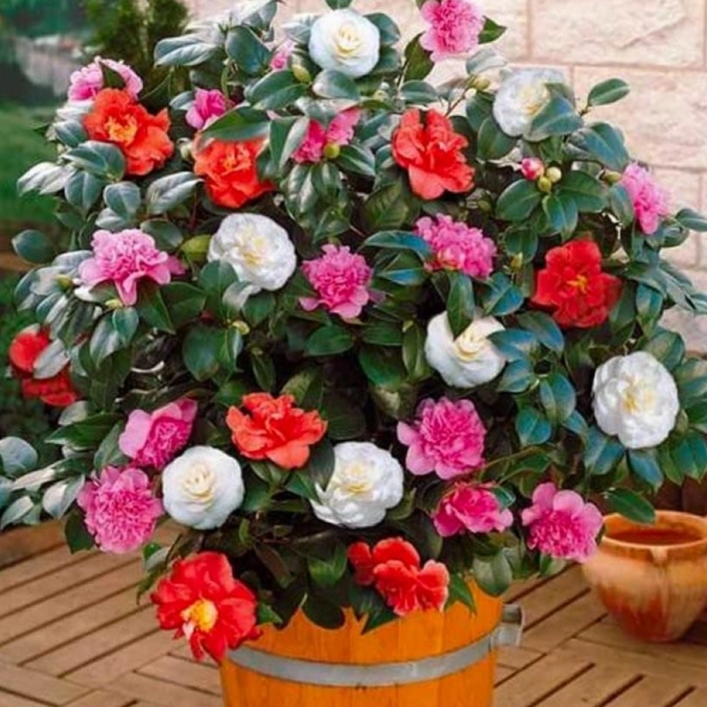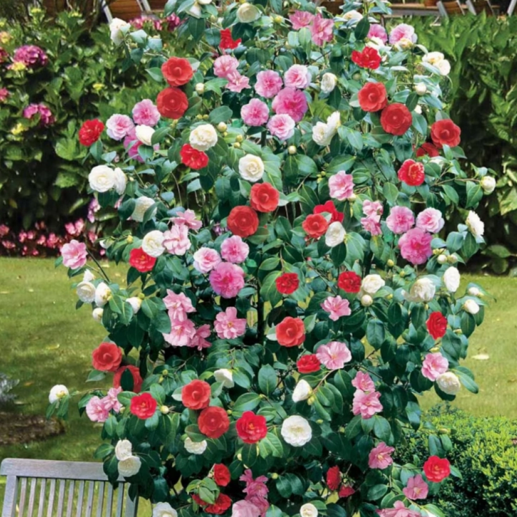 Camelia este un arbust ornamental deosebit, veșnic verde, care se va face remarcat în orice grădină s-ar planta. Dezvoltă o tufă compactă, cu creștere viguroasă și un foliaj verde închis, lucios. Punctul forte al cameliei bicolour îl constituie florile de două culori diferite, acestea afișând o gingășie pură și conferind grădinii un farmec în plus. De fapt, în același ghiveci se regăsesc două varietăți de camelie care, pe măsură ce cresc și se dezvoltă, se întrepătrund și creează impresia că aceeași plantă produce flori de două culori diferite. Preferă locurile umbrite sau parțial umbrie ale grădinilor și necesită un sol acid, bine drenat.