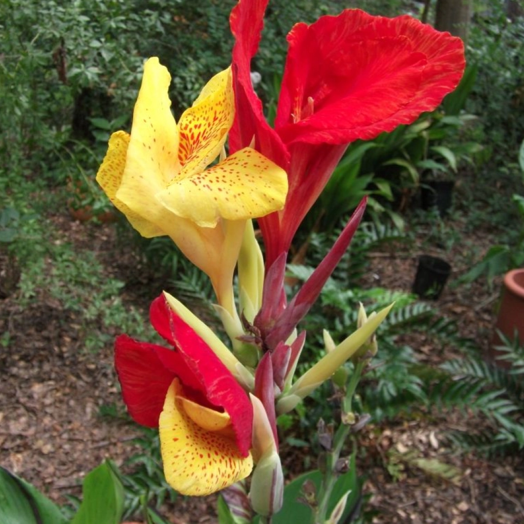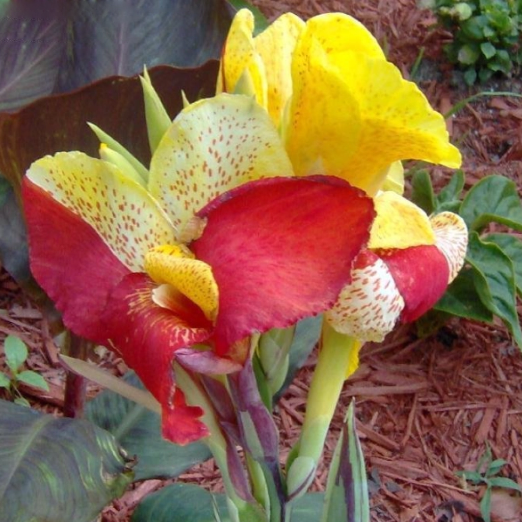 Un soi spectaculos, cu flori galben-roșiatice și aspect exotic. Florile sunt mari și atrăgătoare, bicolore, cu petale galbene și roșii în proporții variabile, sau cu pete roșiatice pe petalele galbene, ceea ce creează un efect vizual interesant. Frunzele sunt mari, lanceolate și decorative, având nuanțe variate: verde, bronz-purpuriu sau tonuri mixte. Canna înflorește din august până la mijlocul toamnei. Se plantează în locuri însorite, în sol bine drenat. Pachetul conţine 1 rizom.