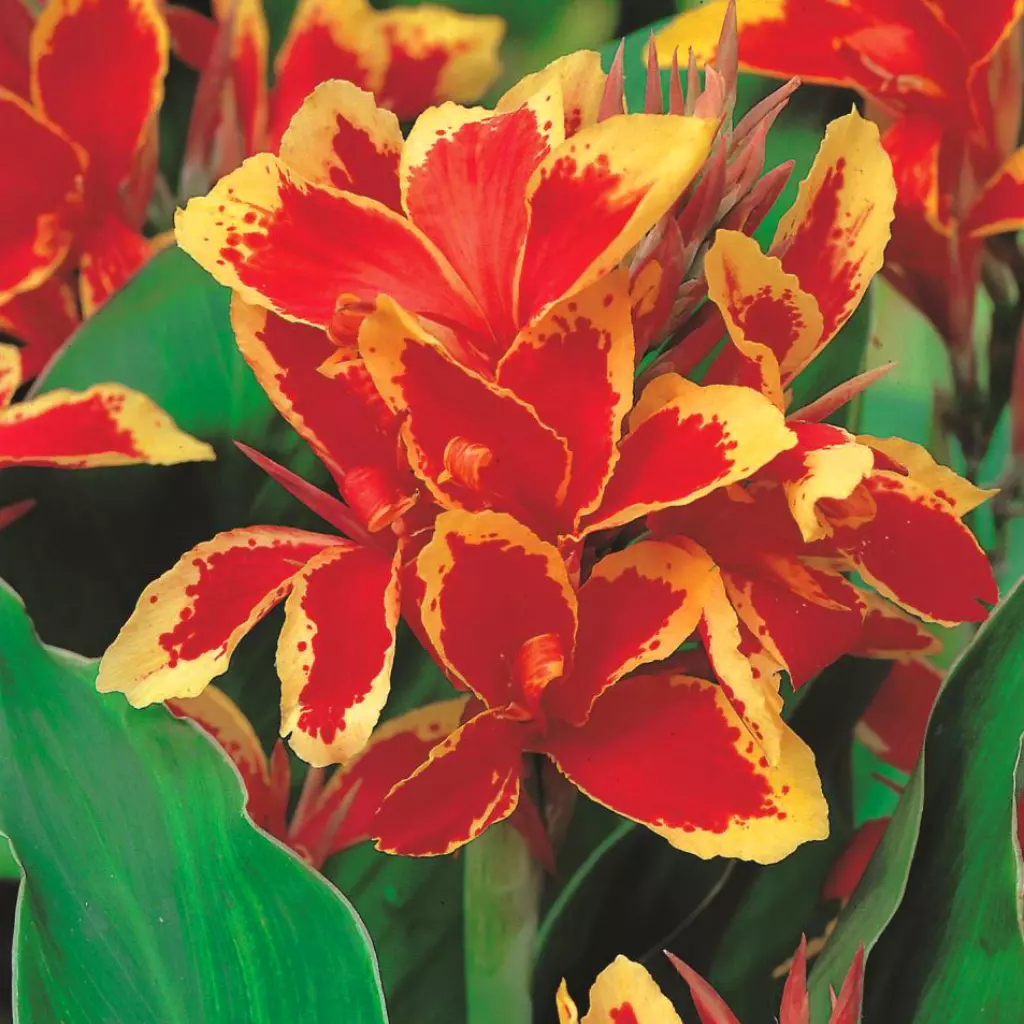 Canna Lucifer merită un loc de cinste, din care poate fi admirată în taoată splendoarea. Flori mari, cu petale ardente, ca niște flăcări tronează în vârful unor tulpini înalte, de un verde crud. Nunațele de portocaliu-roșiatic și galben le face să iasă în evidență, chiar și de la mare depărtare. Pachetul conţine 1 rizom.