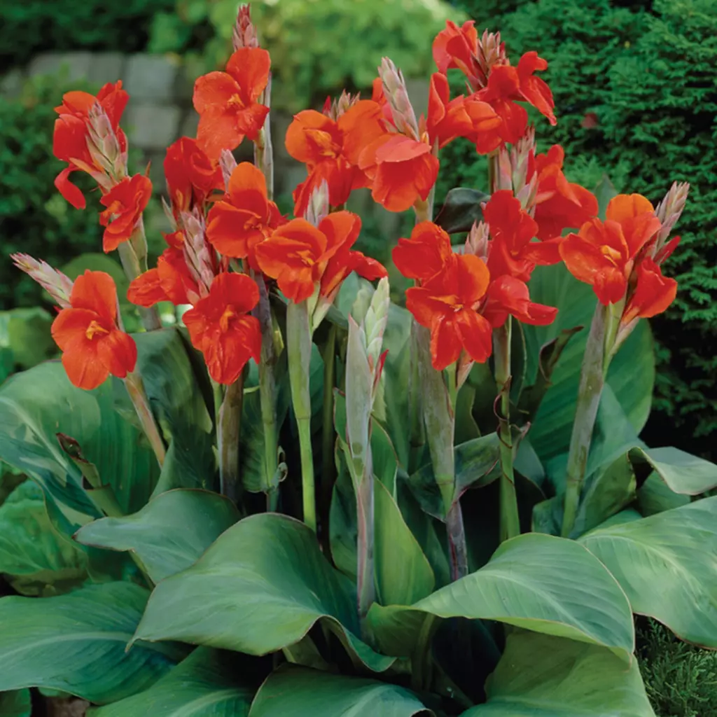 Un soi deosebit de apreciat, grație inflorescențelor bogate, de culoare roșie, care conferă grădinii un aer tropical, alături de frunziș. Acestea apar la începutul verii și ornează frumos până toamna târziu. Pachetul conţine 1 rizom.
