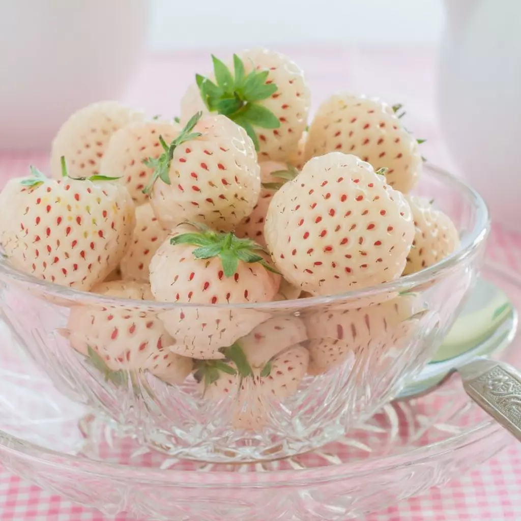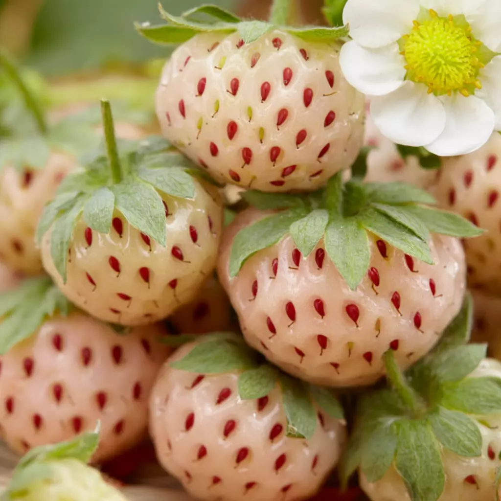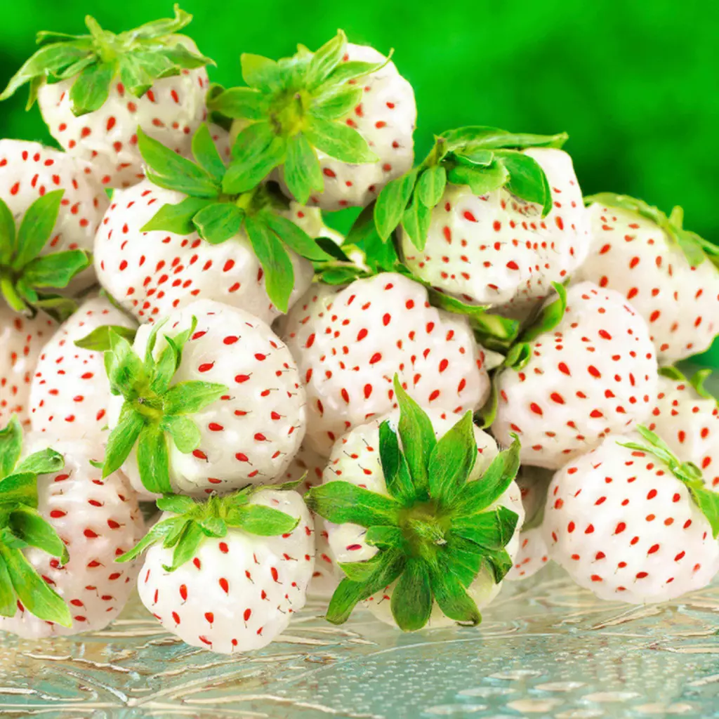 O selecție nouă de căpșuni cu fructe albe! Este un soi viguros, care produce fructe uniforme, atractive, foarte aromate și dulci. Se culeg la mijlocul lunii iunie. Are rezistență ridicată la boli și datorită albului fructul este invizibil pentru păsări. Livrăm stoloni cu rădăcină liberă. Un set conţine 5 bucăţi.