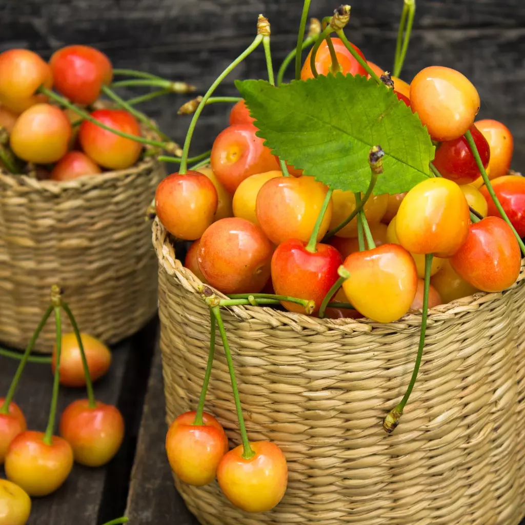 Acest soi este cunoscut printre fanii cireşelor, drept o varietate de cireşe galbene/albe. Fructele cresc mari, ferme şi au o culoare aurie palidă, marmorată cu roşu pe partea cu soare. Au pulpa albă foarte dulce, corpolentă şi foarte aromată, chiar mai dulce decât a cireşelor negre. Un soi târziu excelent pentru compoturi şi gemuri, dar şi pentru consum proaspăt. Polenizatori: Stella, Sunburst.