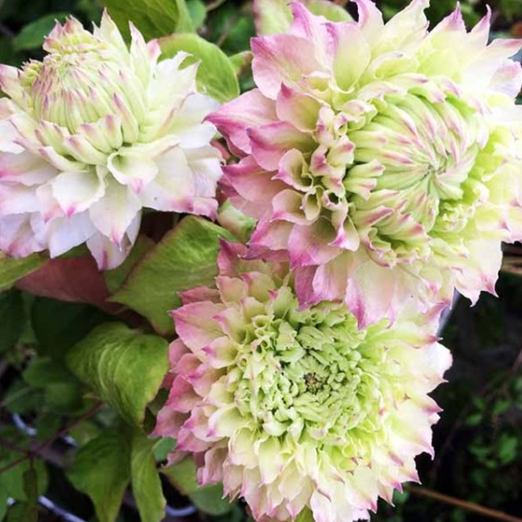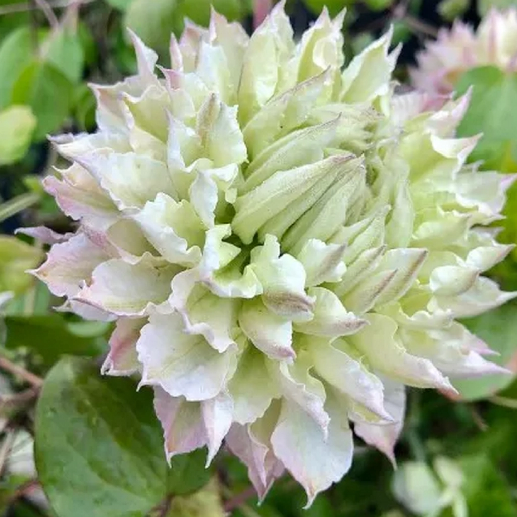 Soi japonez fascinant! Jocul de culori pe care îl putem regăsi la clematita Midori este unul cu-adevărat deosebit și delicat. Florile uriașe, cu un diamteru de circa 12-15 cm, sunt compuse din multiple rânduri de petale, ascuțite la vârf. Desimea acestora, le conferă un volum incredibil și un aspect cu totul aparte. Bobocii florali sunt verzi, însă pe măsură ce aceștia încep să deschisă, petalele se colorează în roz, pentru ca în final, la deschiderea totală, florile să devină albe. Ce parcurs interesant are cromatica acestor splendori!