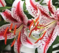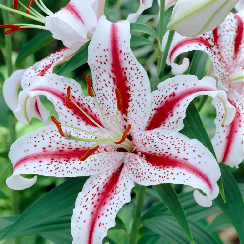 Dizzy este crinul care va face senzație în grădină. Florile cu aspect exotic ne încântă nu doar prin dimensiunea lor mare, ci și prin parfumul ameţitor pe care îl emană. Din punct de vedere cromatic, ne atrag atenția prin petalele albe, cu o dungă vișinie pe mijloc și câțiva pistrui, în aceeași nuanță. Pachetul conţine 1 bulbi.