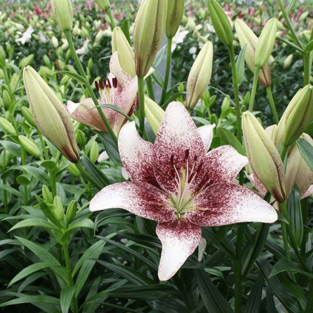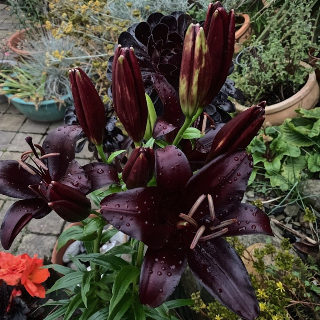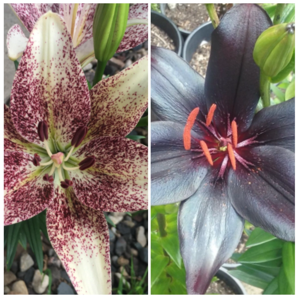 Acest duo spectaculos de crini asiatici aduce un contrast dramatic în grădină. Florile de un violet-negru intens emană o eleganță misterioasă, completată de crinii albi cu petale pistruiate cu pete închise la culoare. Împreună, aceste două soiuri creează un efect vizual captivant, care adăuga un aer sofisticat grădinii. Crinii pot fi folosiți și pentru a crea buchete sau aranjamente florale. Se plantează în locuri însorite, în sol bine drenat. Pachetul conține 2 bulbi.