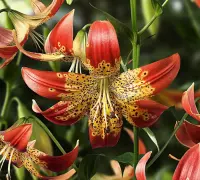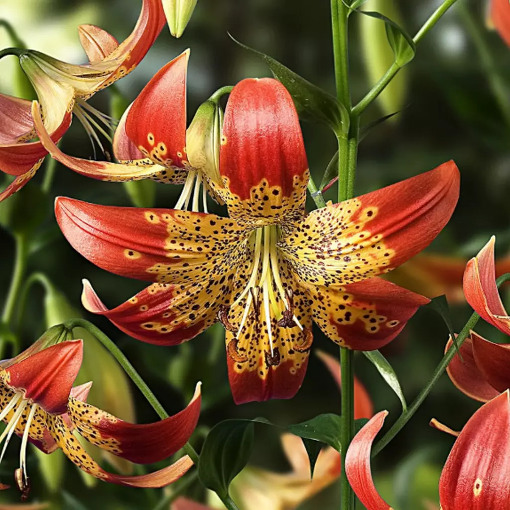 Un crin cu o apariție exotică. Frumusețea sa este cu totul aparte grație formei și culorilor florilor. Petalele extrem de arcuite, cu vârful portocaliu-roșiatic au baza precum blana unui leopard, galbenă cu pete maronii. Staminele lungi, care ies din centrul fiecărei flori îi accentuează farmecul, făcându-l să iasă și mai tare în evidență. Va fi punctul de atracție al grădinii. Poate fi utilizat cu mare succes în orice buchet sau aranjament, ce se dorește a fi special. Pachetul conține 1 bulb.