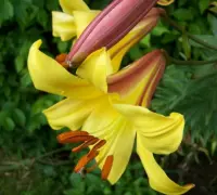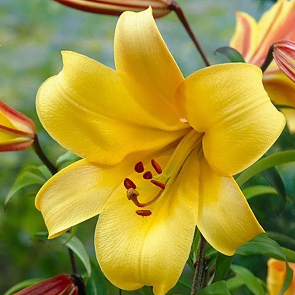 Această varietate de crin este mai rar întâlnită, motiv pentru care merită un loc aparte în orice aranjament exterior. Tulpinile se înalță considerabil, depășind 100 cm. Florile sunt imense și au petale galben-aurii la interior cu dungi vișinii pe la exterior, iar vârfurile stau ușor arcuite. Emană un parfum puternic, dulce. Pachetul conține 1 bulb.