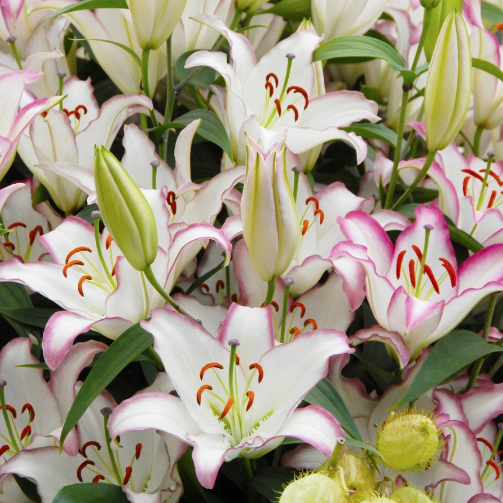 Florile mari și parfumate ale acestui crin sunt perfecte pentru aranjamente florale și buchete. Florile strălucitoare sunt alcătuite din petale albe satinate ce sunt conturate de o nuanță feminină de roz-violet pe marginea petalelor. Acest crin oriental crește până la 1 m înălțime. Poate fi plantat solitar sau în grup pentru a-i accentua frumusețea. Se plantează în locuri însorite, în sol bine drenat. Pachetul conţine 1 bulb.