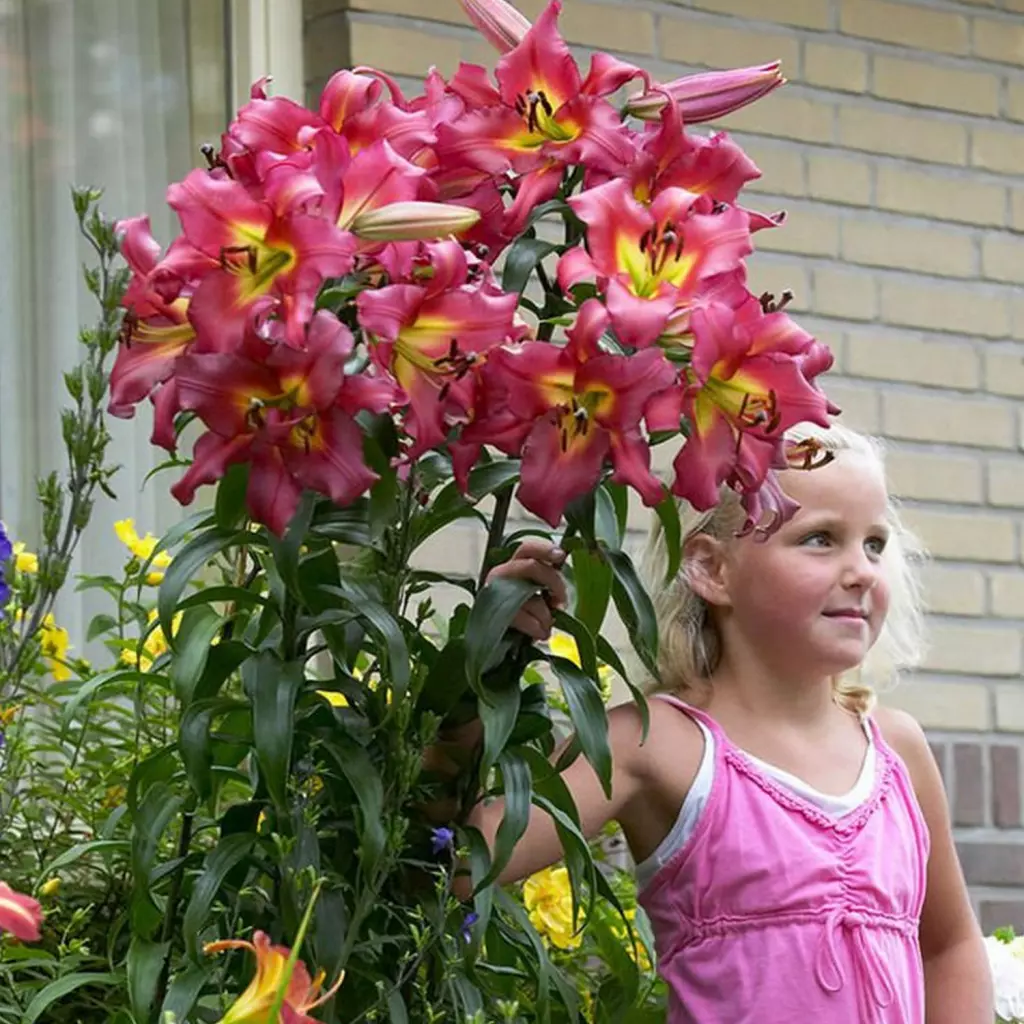 Acest crin va oferi o strălucire aparte grădinilor. După cum deducem din însăși denumirea plantei, Satifaction are tije foarte înalte și flori uriașe, fin colorate în roz și galben. Este rezistent la ger. Pachetul conţine 1 bulb.