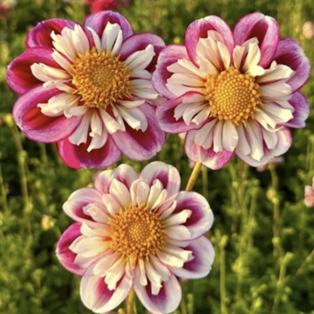 Dalia Bumble Rumble combină vesel petale de un roz închis și petale albe mai mici. Centrul florii, cu stamine galbene, dă un punct luminos și cald. Rezultă o floare cu aspect modern și jucăuș, care la prima vedere nu pare a fi o dalie. Perioada de înflorire durează din iulie până la primele geruri din toamnă. Se plantează în locuri însorite, în sol bine drenat. Pachetul conține 1 rizom.