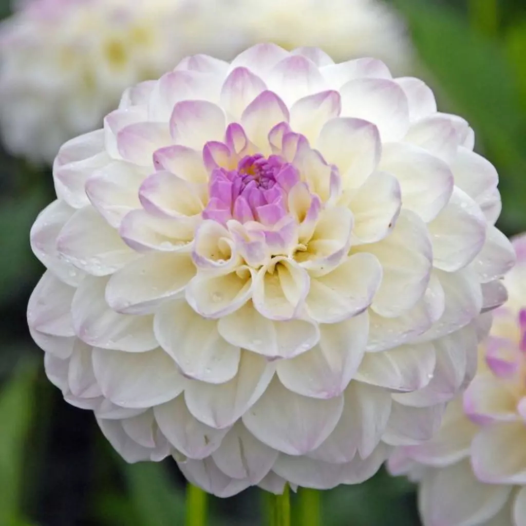 Eveline este una dintre cele mai frumoase şi delicate, soiuri de dalie pompon. Florile cu petale albe și fine accente de mov deschis, apar în vârful unor tulpini înalte, luminându-vă grădina. Fluturii iubesc această dalie şi vor vizita des locul în care este plantată. Are o înflorire bogată, începând de la mijlocul verii până toamna târziu. Pachetul conţine 1 bulb.