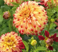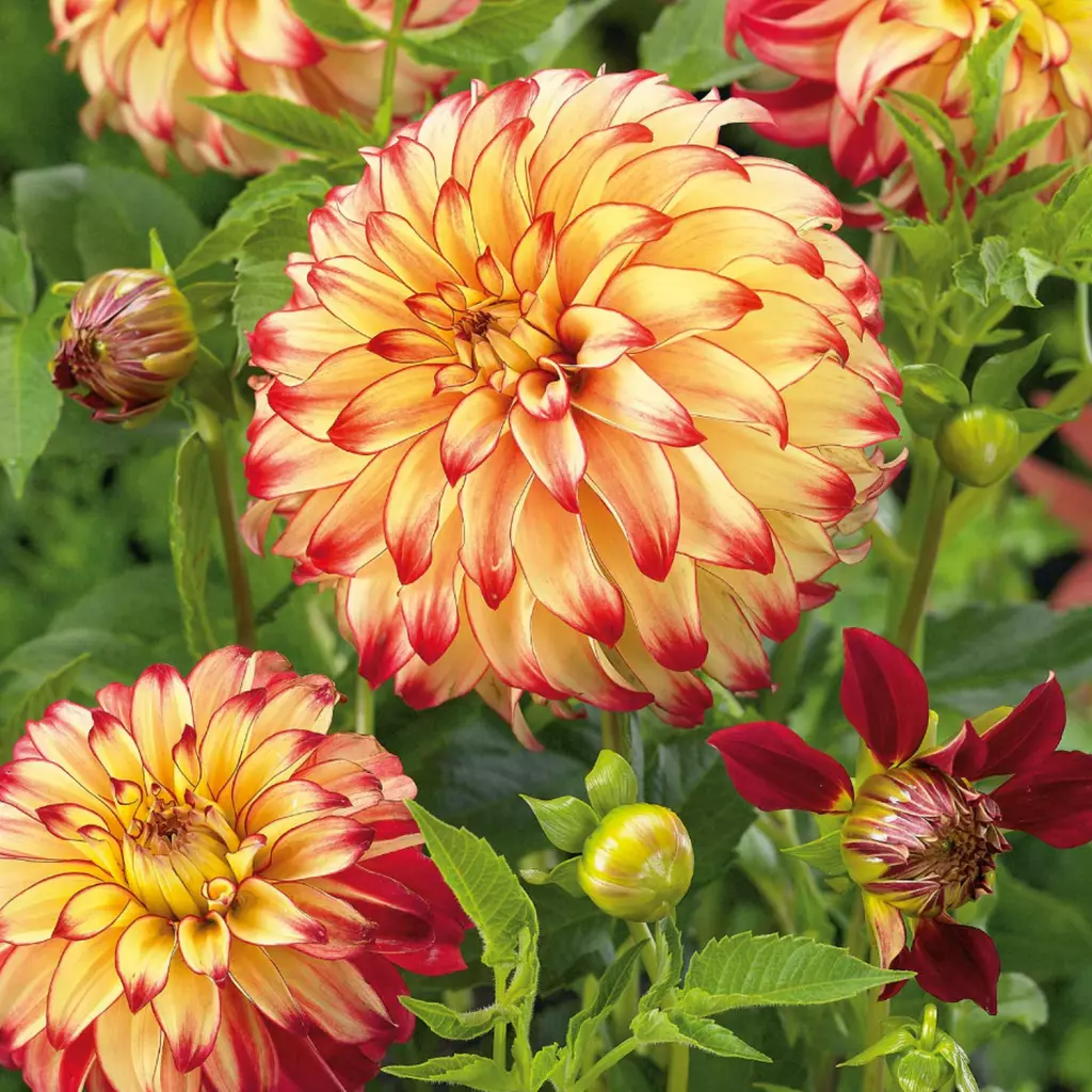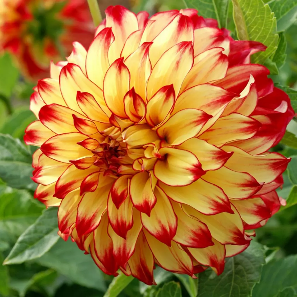 Un adevărat glob de foc în grădină. Floarea va atrage toate privirile prin combinaţia magnifică de culori a petalelor, acestea fiind galben-aurii la bază, cu vârfurile roșii. Înfloreşte de la mijlocul verii, până la primele geruri. Pachetul conţine 1 bulb.