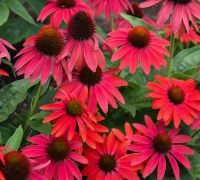 Echinacea Lakota Red va fi planta care se va face remarcată rapid, chiar și de la distanță. Este elegantă, înaltă și suplă, precum o tânără domniță. Formează o tufă bogată, care poate transforma radical aspectul unei grădini. Este extrem de îndrăgită, grație florilor care apar în vârful unor tije subțiri, dar viguroase, de aproximativ 50-60 cm, la maturitate. Tipică și acestui soi de Echinacea, este forma florilor: un con maroniu, proeminent, înconjurat de petale delicate, colorate în diferite nuanțe de roșu. Foliajul de un verde închis le scot acestora în evidență frumusețea, punându-le în valoare. Plantând-o în grădină nu doar că veți beneficia de un peisaj mirific, ci veți fi vizitați cu regularitate, pe timpul verii, de cei mai veseli și jucăuși fluturi. Ca amplasament, preferă zonele luminoase, însorite.