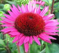 O echinacea cu înflorire abundentă. Magnus formează o tufă bogată, cu multe tije viguroase, semețe, care susțin în vârful lor flori vesel colorate, cu aspect de pălărie. Acestea sunt formate din petale rozalii, ce înconjoară un con maroniu-portocaliu. Acesta din urmă fiind locul preferat de aterizare a fluturilor, deoarece este un soi care îi atrage ca un magnet. Se potrivește în grădinile rustice, dar și în cele amenajate în stil modern. La maturitate, ajunge până la 60-90 cm înălțime.