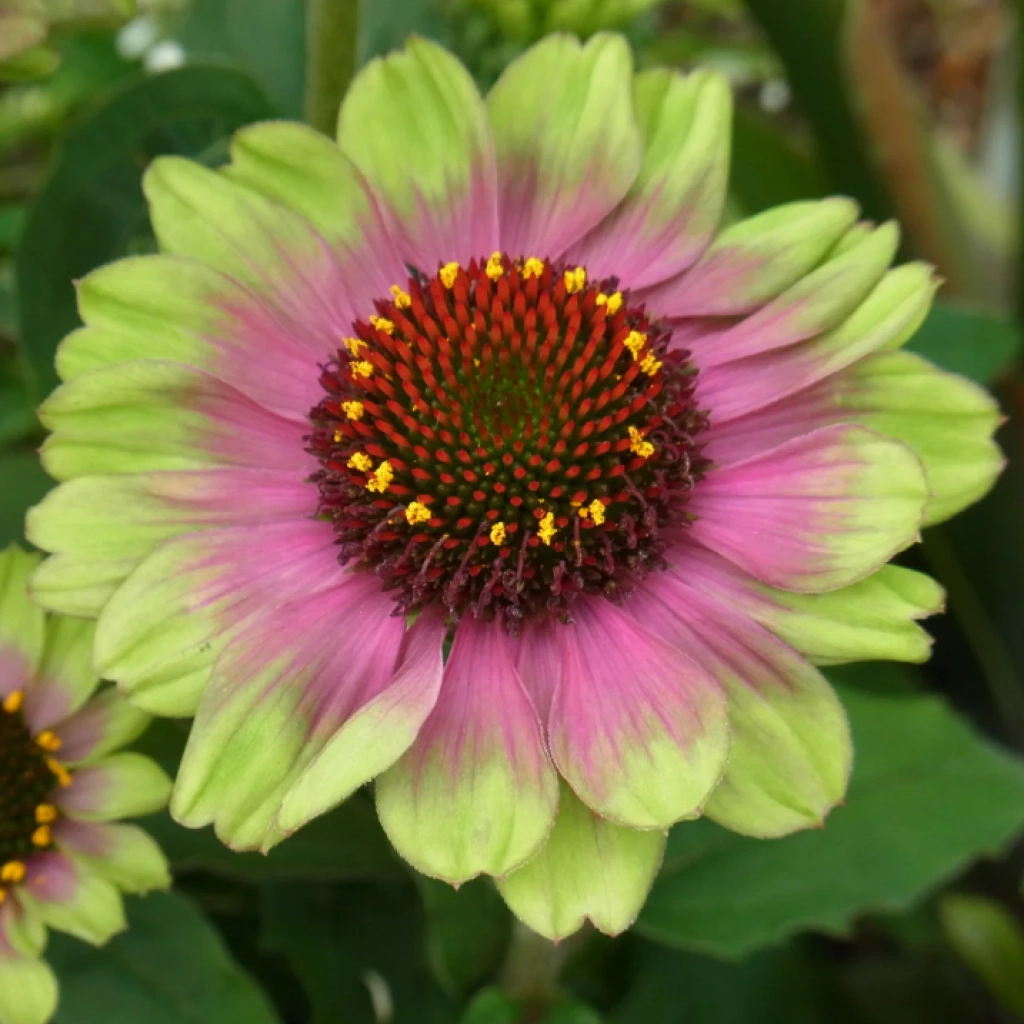 O plantă perenă compactă, cu aspect modern. Petalele au culoarea verde-lămâie la bază, cu o nuanță roz care se accentuează pe măsură ce floarea se maturizează. Conul central este închis la culoare și proeminent. Capetele de sămânță rămase după înflorire merită lăsate pe plantă pentru că sunt o sursă de hrană pentru păsări în sezonul rece și adaugă textură în grădina de iarnă. Echinacea se plantează în locuri însorite, în sol bine drenat.