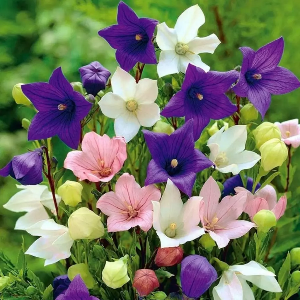 O floare balon în grădină este adorabilă, însă mai multe la un loc, sunt un vis devenit realitate. Aceste plante, în ciuda faptului că sunt mici de înălțime, cuceresc prin drăgălășenia florilor. În fază de boboc, ne trimit cu gândul la niște baloane, datorită formei pe care o au și care de altfel, dau și denumirea plantei. După ce se deschid, ies la iveală florile asemănătoare unor clopoței, diferit colorați în funcție de soi: albi, roz sau mov-albăstrii. Pachetul conține 3 rizomi, de culori mixte, care nu se pot alege.