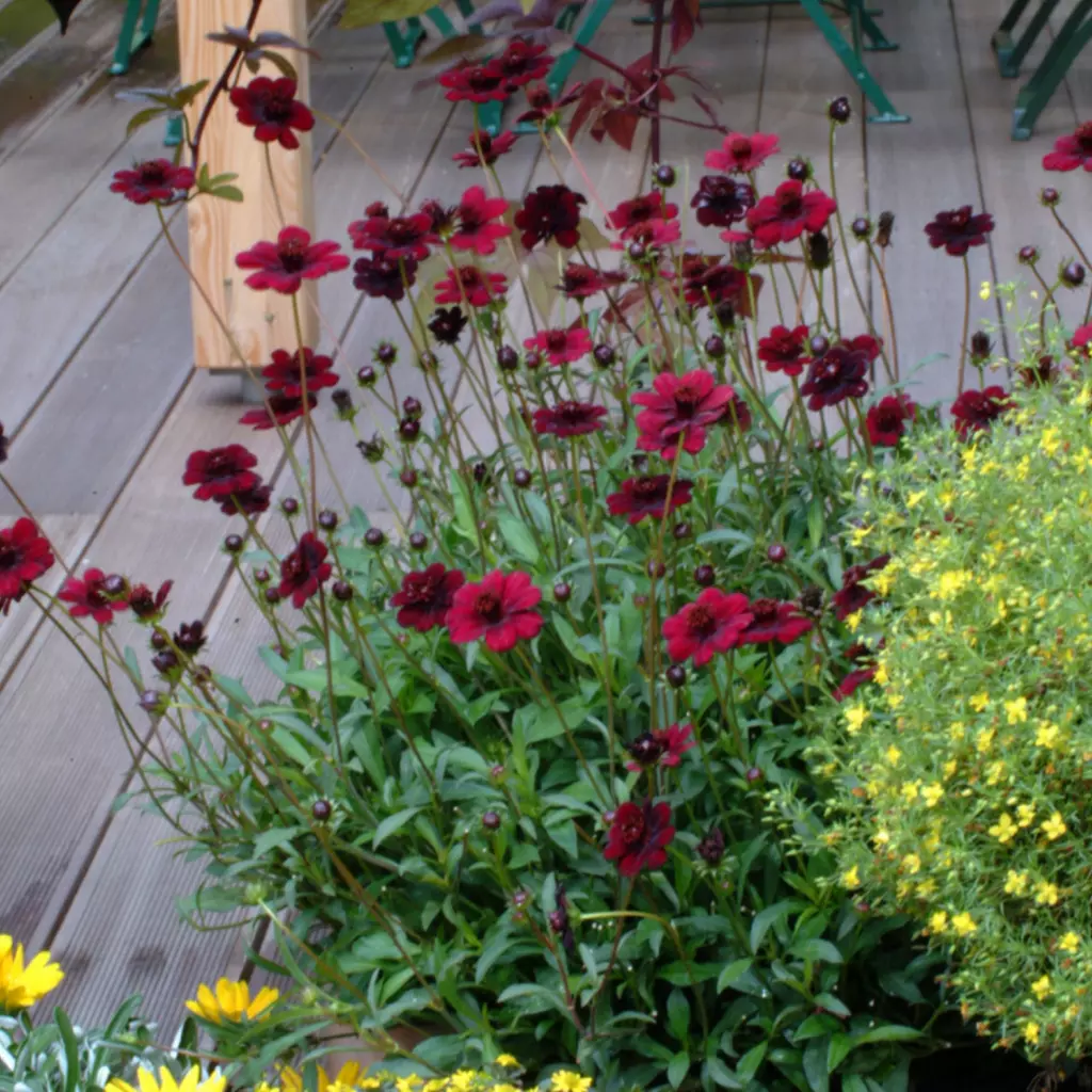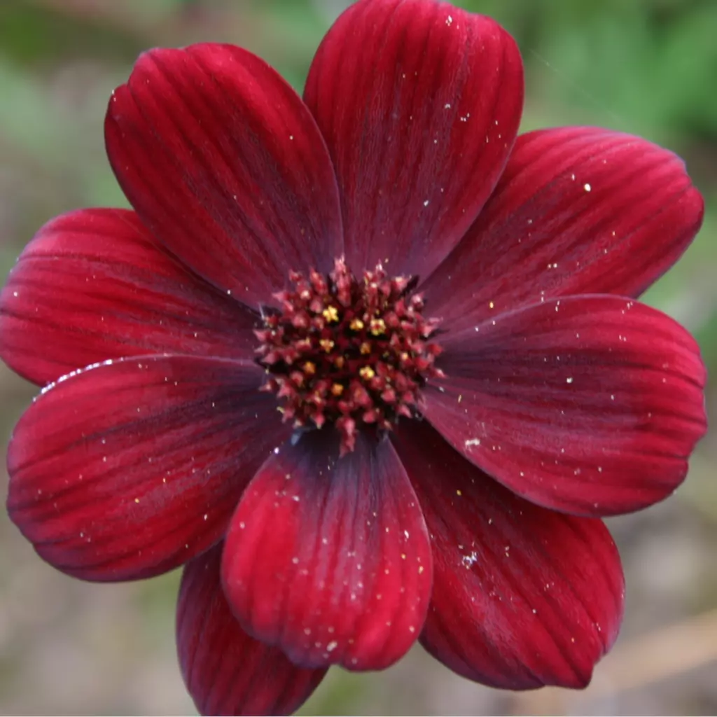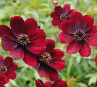 O frumusețe demnă de toată aprecierea și anume, o plantă perenă cu origini sud și nord-americane. Decorează grădinile prin florile sale pline de grație și mister, ce apar în vârful unor tije extrem de subțiri și delicate. Petalele ca din catifea, colorate în vișiniu-ciocolatiu îmbrățișează o aglomerare de stamine în aceleași note cromatice, conferind plantei un efect dramatic deosebit. Cosmos Astrosanguineus surprinde și prin parfumul discret pe care-l emană, acesta îmbinând armonios aroma vaniliei și a ciocolatei calde; motiv pentru care, în limbaj popular, uneori, i se mai spune și Floarea de ciocolată. Se poate planta solitar, însă arată spectaculos de-a lungul unei alei, ca bordură, precum și alături de alte plante perene, contribuind astfel la realizarea unor aranjamente peisagistice de mare efect. Începe să înflorească de la mijlocul verii și atrage fluturii ca un magnet. Se amplasează în locuri însorite, luminoase.