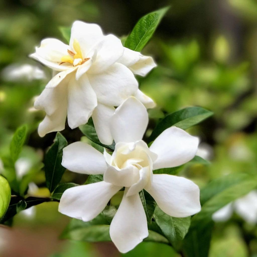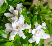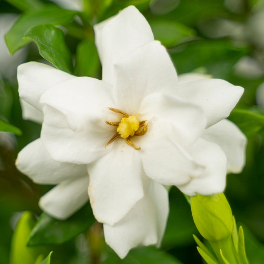Acest soi de gardenie produce flori duble, mari și foarte parfumate. Înflorește în lunile calde ale anului, învăluind grădina sau terasa într-un parfum dulce și intens. Chiar și bobocii florali pot emana un parfum subtil înainte de deschiderea completă a florilor. Frunzișul verde lucios și florile albe dau un aspect foarte elegant plantei. Rezistă la îngheț chiar și până la -15 grade Celsius pentru perioade scurte de timp, dar în general se recomandă protejarea plantei dacă temparaturile scad sub -10 grade Celsius pentru perioade mai lungi. Gardenia preferă un amplasament cald, la un loc luminos spre semiumbrit, și un sol ușor acid și bine drenat.