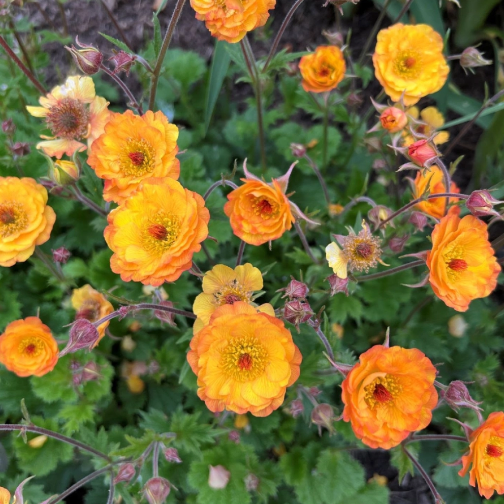 Acest soi de geum aduce în grădină nuanțe calde. Din tufa de frunze verzi se ridică tulpini subțiri, de culoare roșiatică. Florile semi-dub¬le, cu petale ușor ondulate, amestecă tonuri de galben, caisă și portocaliu, uneori cu reflexe rozalii. Datorită dimensiunii compacte, este o alegere potrivită pentru borduri, straturi mixte sau chiar pentru cultivarea în ghivece. Planta preferă solurile bine drenate și amplasamentele însorite sau semiumbrite.